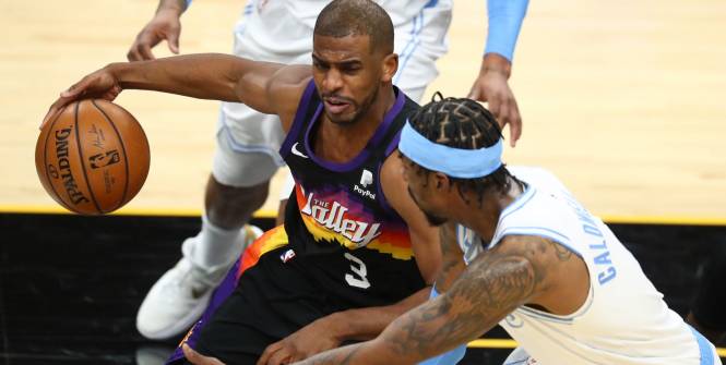 Dans la bataille de la nuit à l’Ouest, les Phoenix Suns ont largement dominé des Lakers (111-94), qui vont devoir apprendre à jouer sans leurs deux stars, Anthony Davis et LeBron James.source : https://www.lequipe.fr/Basket/Actualites/Phoenix-implacable-face-a-des-lakers-diminues/1234993#xtor=RSS-1