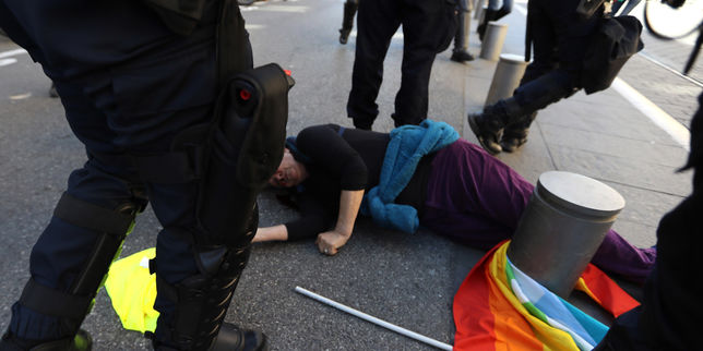 Geneviève Legay, 73 ans, « a été poussée », mais « il est difficile de savoir qui exactement était derrière elle ». source : https://www.lemonde.fr/societe/article/2019/03/25/gilets-jaunes-aucun-contact-entre-la-manifestante-blessee-a-nice-et-un-policier-selon-le-procureur_5441126_3224.html
