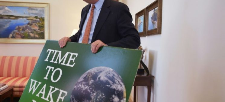 Il pensait l’avoir rangée pour de bon: un peu dépité, un sénateur américain a ressorti mercredi pour la 280ème fois une grande pancarte verte avec laquelle il exhorte depuis des années l’Amérique à se « réveiller » et agir pour le climat.